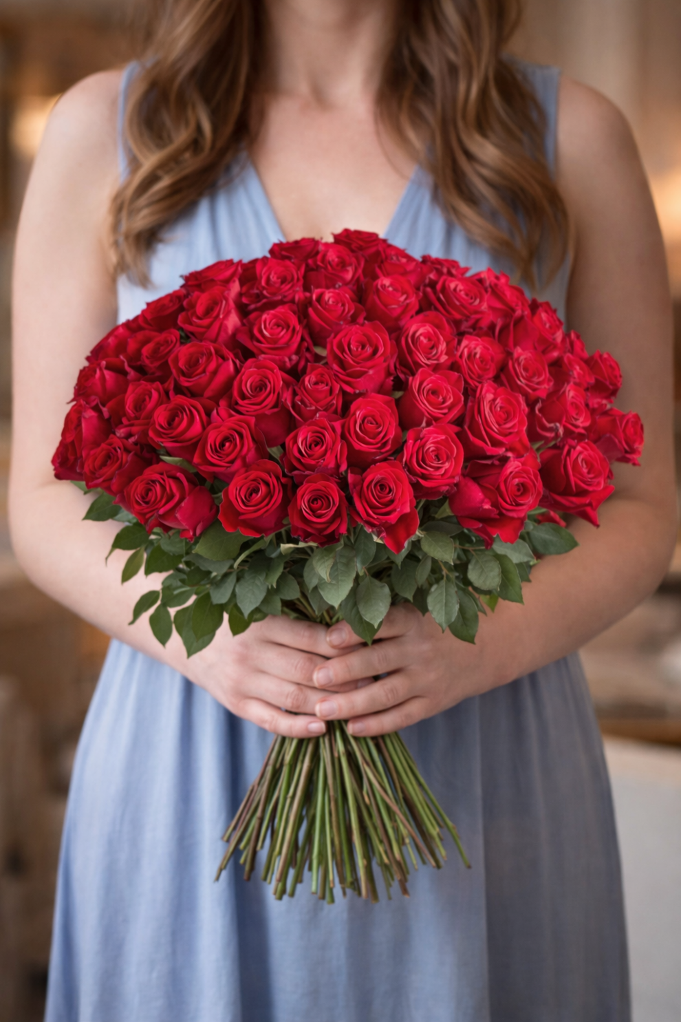 101 adet kırmızı gülden oluşan bu gösterişli çiçek buketi; aşkın, tutkunun ve romantizmin en güçlü sembollerinden biridir. Yoğun kırmızı renkleri ve etkileyici görünümü sayesinde özel günlerde unutulmaz bir hediye seçeneği sunar. Çiçek Cumhuriyeti tarafından hazırlanan bu özel kırmızı gül buketi; sevgililer günü, yıl dönümü, evlilik teklifi ve romantik sürprizler için tercih edilen klasik ve prestijli bir çiçek tasarımıdır. Taze kırmızı güllerin büyüleyici görünümü ile duygularınızı en etkileyici şekilde ifade etmenizi sağlar.