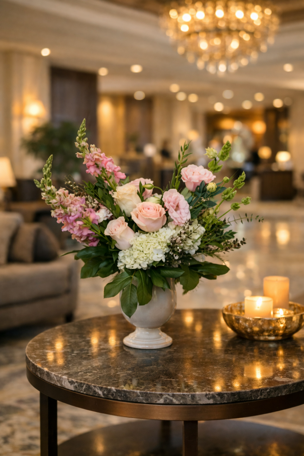 Pastel tonlardaki güller, ortancalar ve mevsim çiçekleriyle hazırlanan bu zarif çiçek aranjmanı; otel lobileri, restoran girişleri ve prestijli mekan dekorasyonları için tasarlanmış şık bir çiçek tasarımıdır. Yumuşak renk tonları ve doğal yeşilliklerle hazırlanan bu aranjman bulunduğu ortama zarafet ve ferahlık katar. Çiçek Cumhuriyeti tarafından hazırlanan bu dekoratif masa çiçeği; oteller, davet alanları, toplantı salonları ve özel etkinlik mekanlarında estetik bir atmosfer oluşturmak için tercih edilen profesyonel bir çiçek tasarımıdır.