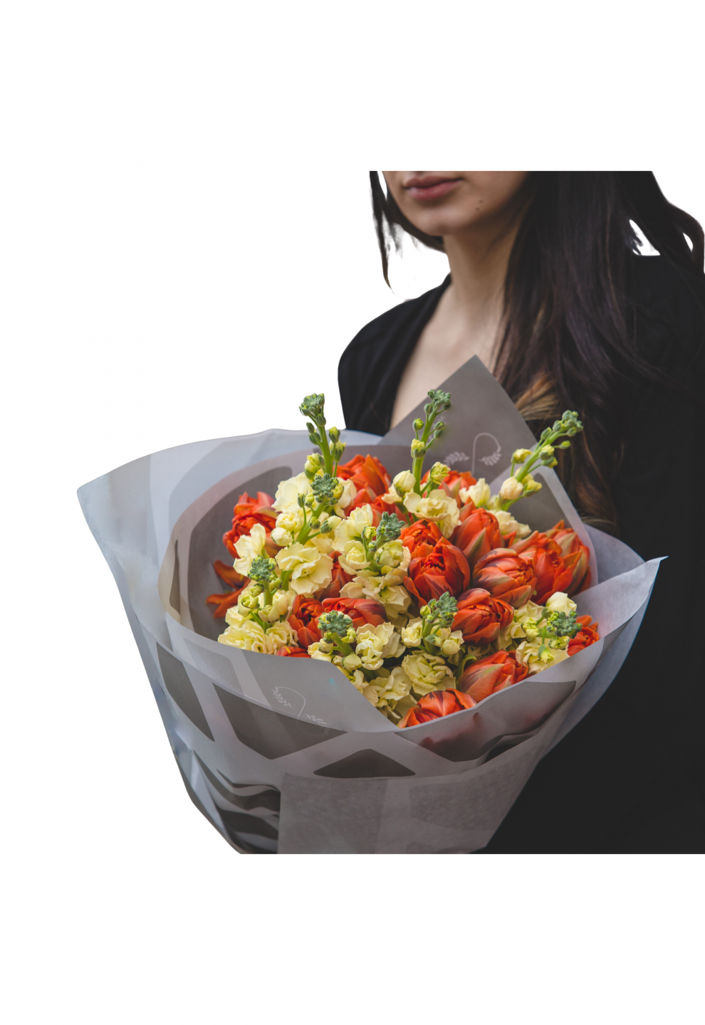 Turuncu Lale & Mevsim Buketi – Premium Tasarım | Bodrum Aynı Gün Teslim Tasarım 'da kullanılan çiçek ve aksesuarlar stok durumuna göre farklılık gösterilebilir.